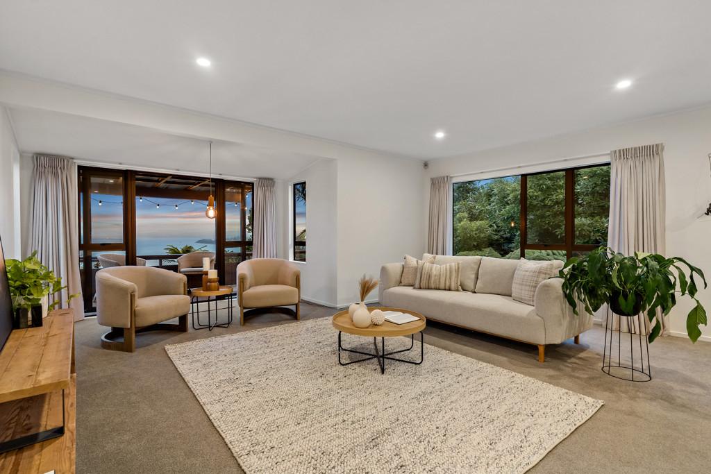 Elevated to capture breathtaking views across the Waitemata Harbour, the outlook becomes part of everyday life - ever-changing, endlessly calming. Open plan dining, kitchen and living areas flow effortlessly to an expansive deck, creating a natural extension for entertaining, morning coffee in the sun, or evenings watching breathtaking sunsets.