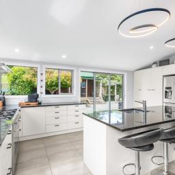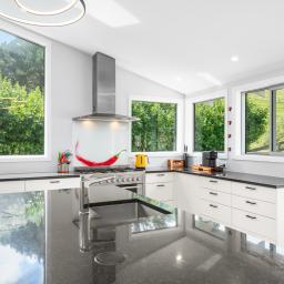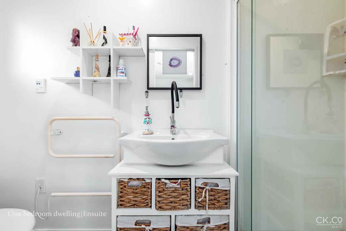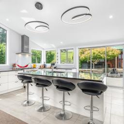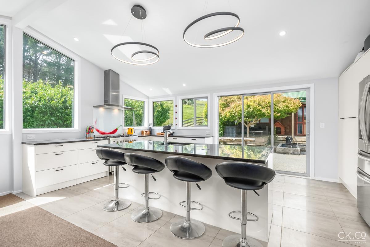The main home offers three generous bedrooms and three bathrooms, including two bedrooms with their own ensuites – ideal for teenagers, guests or extended family. The heart of the home is the light-filled open plan kitchen, dining and living area, where large windows frame lush green outlooks and sliding doors connect seamlessly to outdoor entertaining spaces.