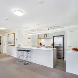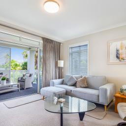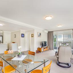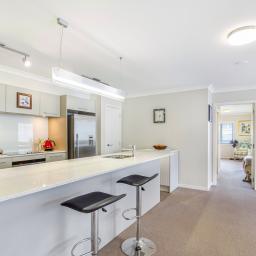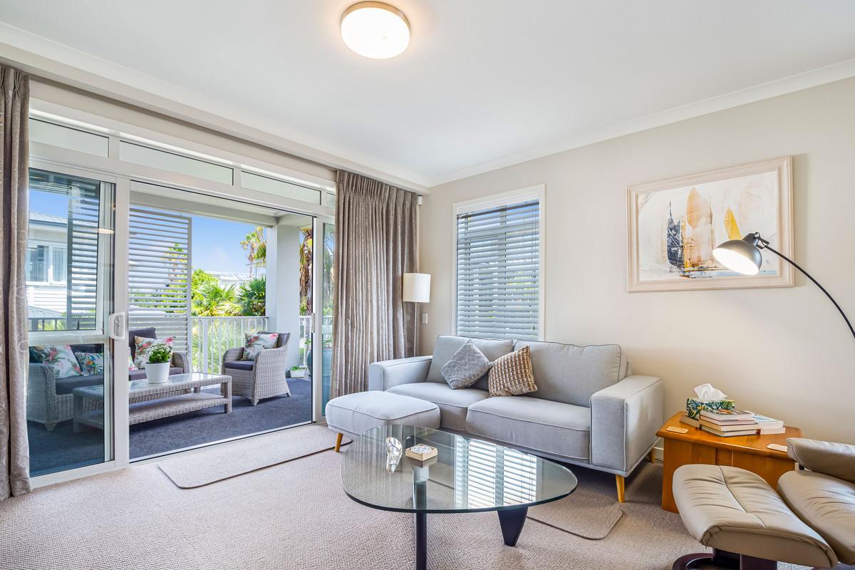 Offering approximately 123m² of thoughtfully designed interior space, the open-plan layout delivers both functionality and flow — ideal for entertaining and accommodating guests. Two private car parks are included in the purchase, with ample visitor parking just steps from the secure lobby.