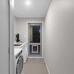 * Stone benchtop kitchen with pantry
