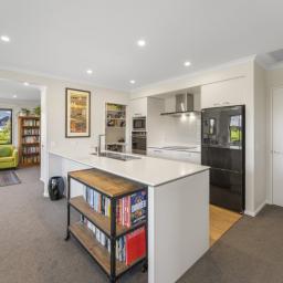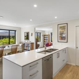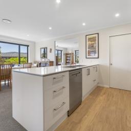 At the heart of the home is a light-filled open-plan kitchen, dining, and living space designed for everyday ease and entertaining. The kitchen is well appointed with excellent bench space, a generous walk-in pantry, and a layout that keeps everything within easy reach. Ducted heating throughout the home ensures consistent warmth year-round, while fly screens on most windows allow you to enjoy fresh air in comfort.