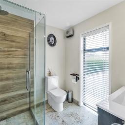 Completed in August 2019, the home is packed with extras including an HRV system, two heat pumps, garden shed, raised vegetable gardens, glasshouse, garden irrigation system, dish drawers, and a water filtration system – all enhancing comfort and convenience.