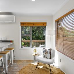 Despite being in the very centre of Birkenhead, the property is set well back from the road, north-facing and bathed in sunlight. Here, you can enjoy morning coffee or evening sundowners while overlooking the tranquil, private bush from the elevated north-facing deck. The convenience is unparalleled, with the New World supermarket directly over the road and the vibrant village shops at your doorstep, your daily errands are effortless.