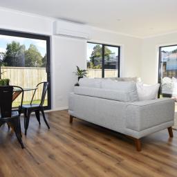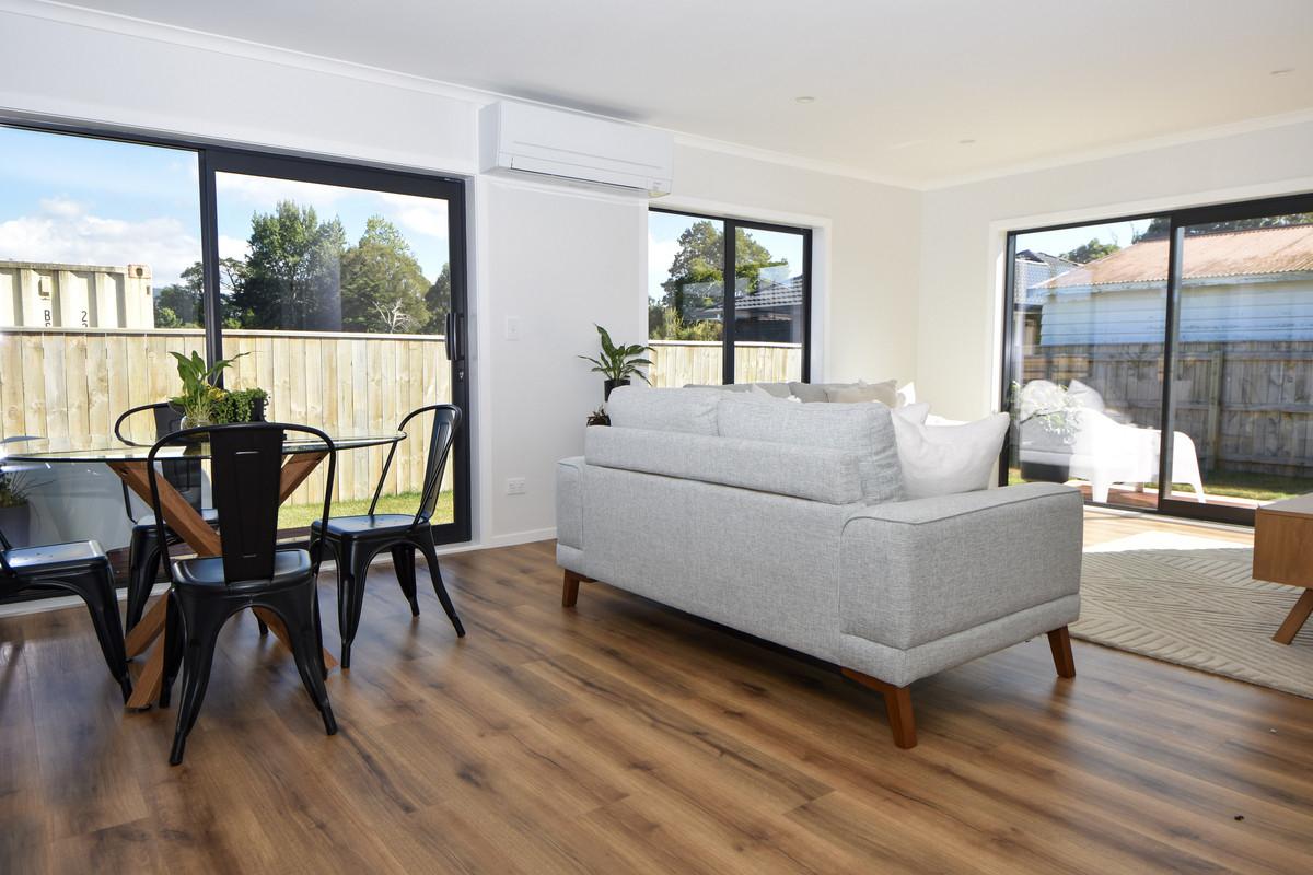 The open floor plan is bathed in natural light, creating an inviting atmosphere throughout. Featuring three spacious bedrooms, including a master suite with an ensuite bathroom and walk in robe, this residence ensures comfort and privacy for all occupants. The contemporary decor complements a variety of furnishing styles, allowing you to personalize each space effortlessly. Equipped with a heat pump, the home maintains a comfortable temperature year-round, enhancing energy efficiency.