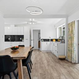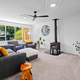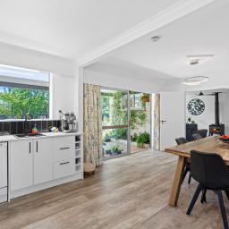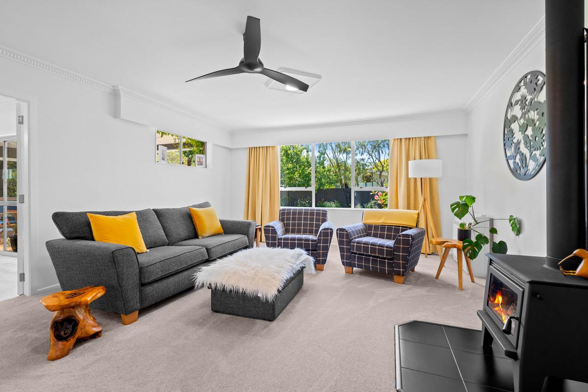 The spacious living areas are warmed by a wood burner, heat pump and ceiling fans, creating a cosy and welcoming hub for the family. The modern, fully renovated interior pairs beautifully with the solid brick exterior, giving you a stylish yet low-maintenance home.