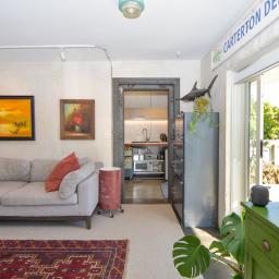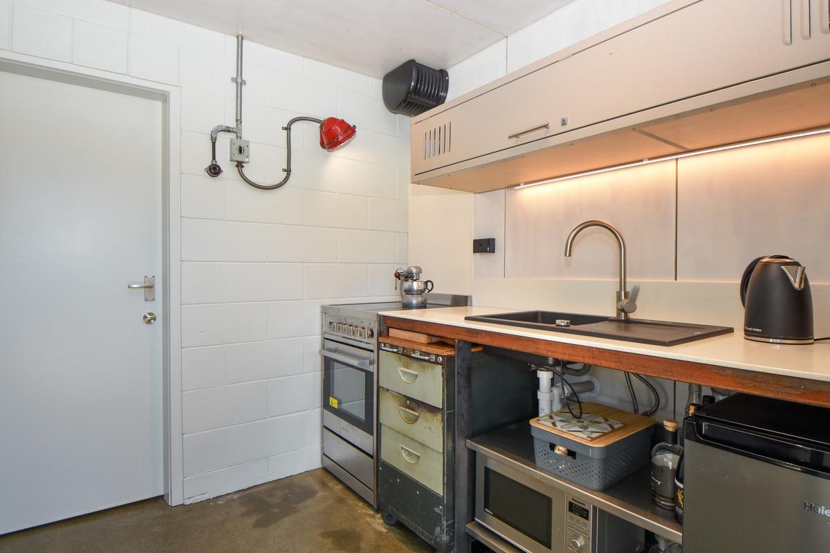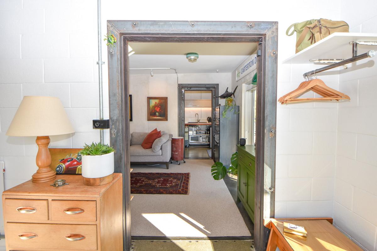 The layout is welcoming and practical. Enjoy a sunny aspect, double-glazed windows, a heat pump for year-round comfort and an impressively spacious bathroom with integrated laundry. The kitchen is both functional and full of personality. Fully rewired with three-phase power and excellent insulation, it's ready for business. One of the standout features is the repurposed loading dock - now a sun-drenched deck with views to the Tararuas, perfect for breaks or informal meetings.