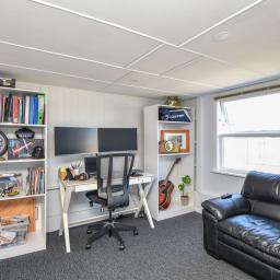 Upstairs features three well-sized bedrooms, family bathroom, study nook, office space, and excellent storage. Downstairs, a versatile room off the garage provides the perfect work-from-home space, TV snug, or teen retreat.
