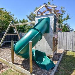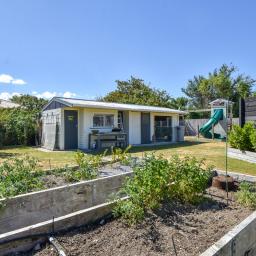 The backyard is a true family haven with a playground, raised vegetable beds, fruit trees, multiple sheds, and 24 solar panels for energy efficiency. With schools and parks just down the road, this is easy, practical family living in a location that delivers.