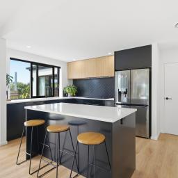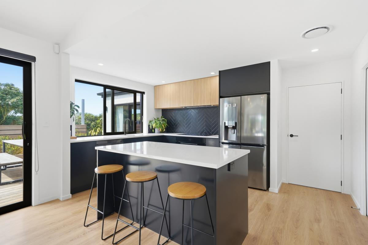 The heart of the home is a spacious open-plan kitchen, dining and living area designed for easy living and effortless entertaining. The kitchen is both stylish and highly functional, anchoring the space while flowing seamlessly through to the living zone. Large sliders open directly to the deck and BBQ area, creating a natural extension of the living space and an ideal setting for relaxed gatherings, long summer evenings and family celebrations.