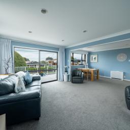 The light-filled open-plan kitchen, dining, and lounge enjoys north-facing views and seamless indoor-outdoor flow to a wraparound north- and east-facing balcony - the perfect setting for soaking up the sun or hosting summer BBQs. Positioned in a quiet crescent with strong street appeal, you're just moments from the Collegiate Rugby Football Club fields and the scenic Otepuni River walkway leading into town.