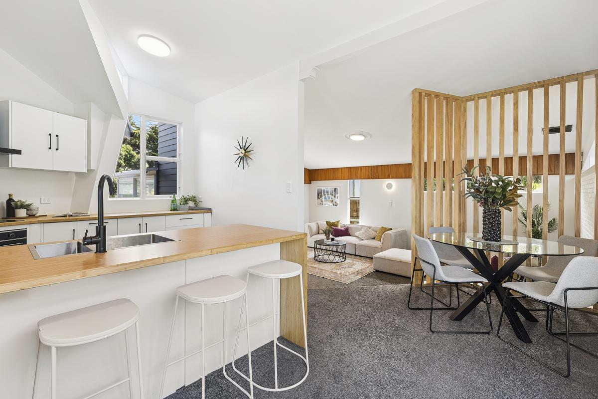 - Mid-century charm that's been updated for stylish modern living, from the well-appointed kitchen with timber benchtops to the airy, light-filled lounge with painted brick feature wall