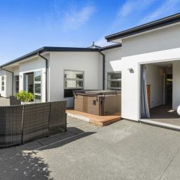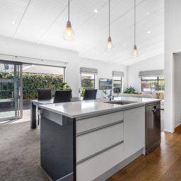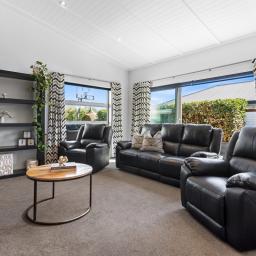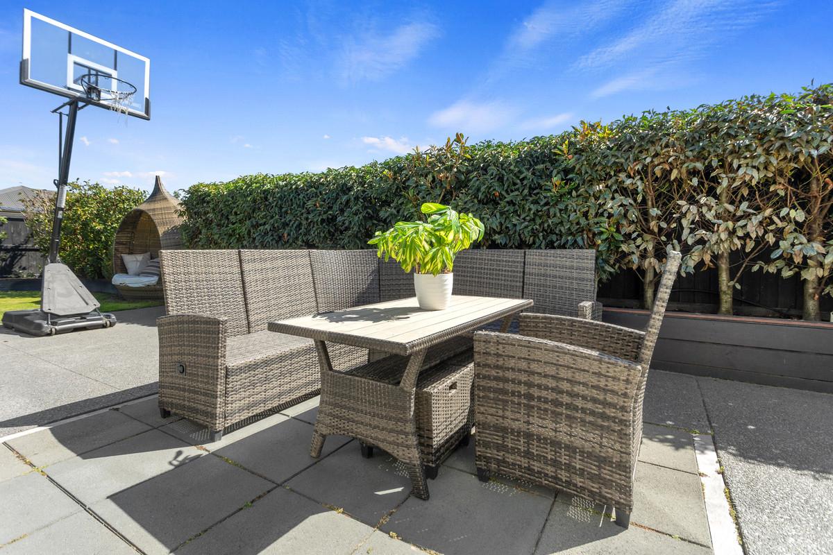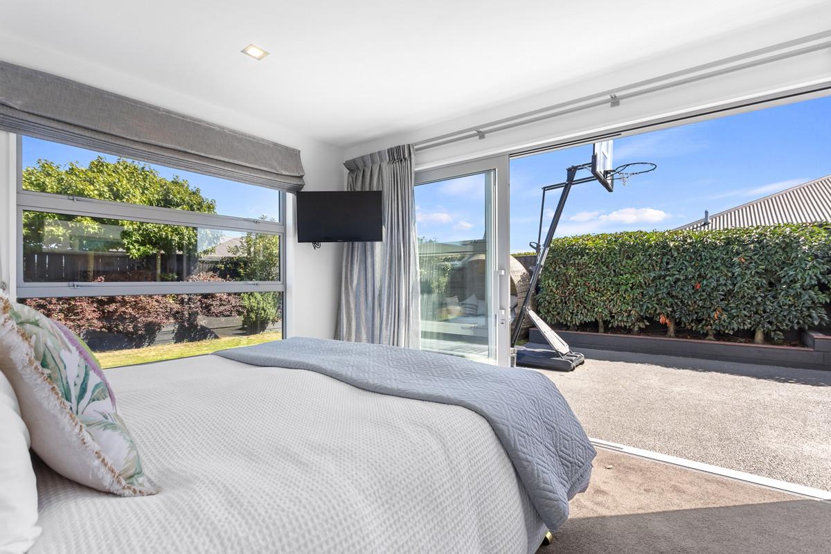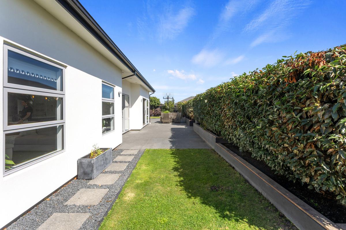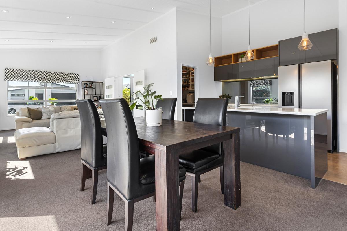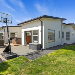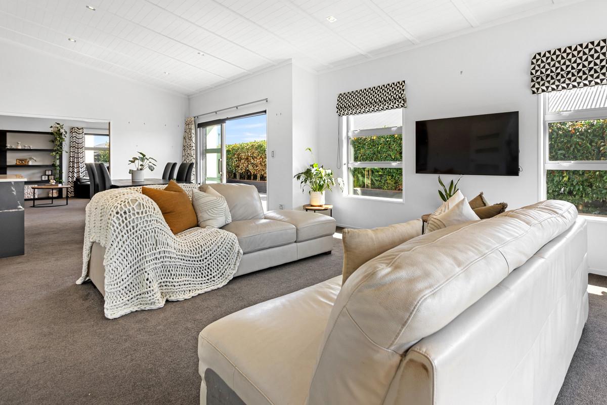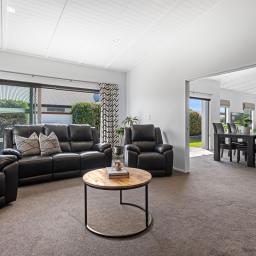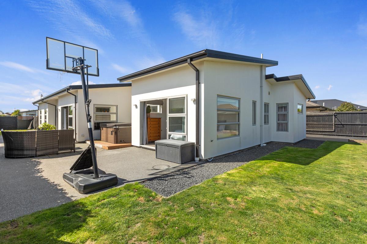 Positioned in the sought-after Sovereign Palms pocket of Kaiapoi, this contemporary 243m² mono-pitch home was thoughtfully designed for spacious family living and a lifestyle of modern comfort, practicality, and private outdoor space - which is set on a generous 656m² section with privacy, sun, and established landscaping.