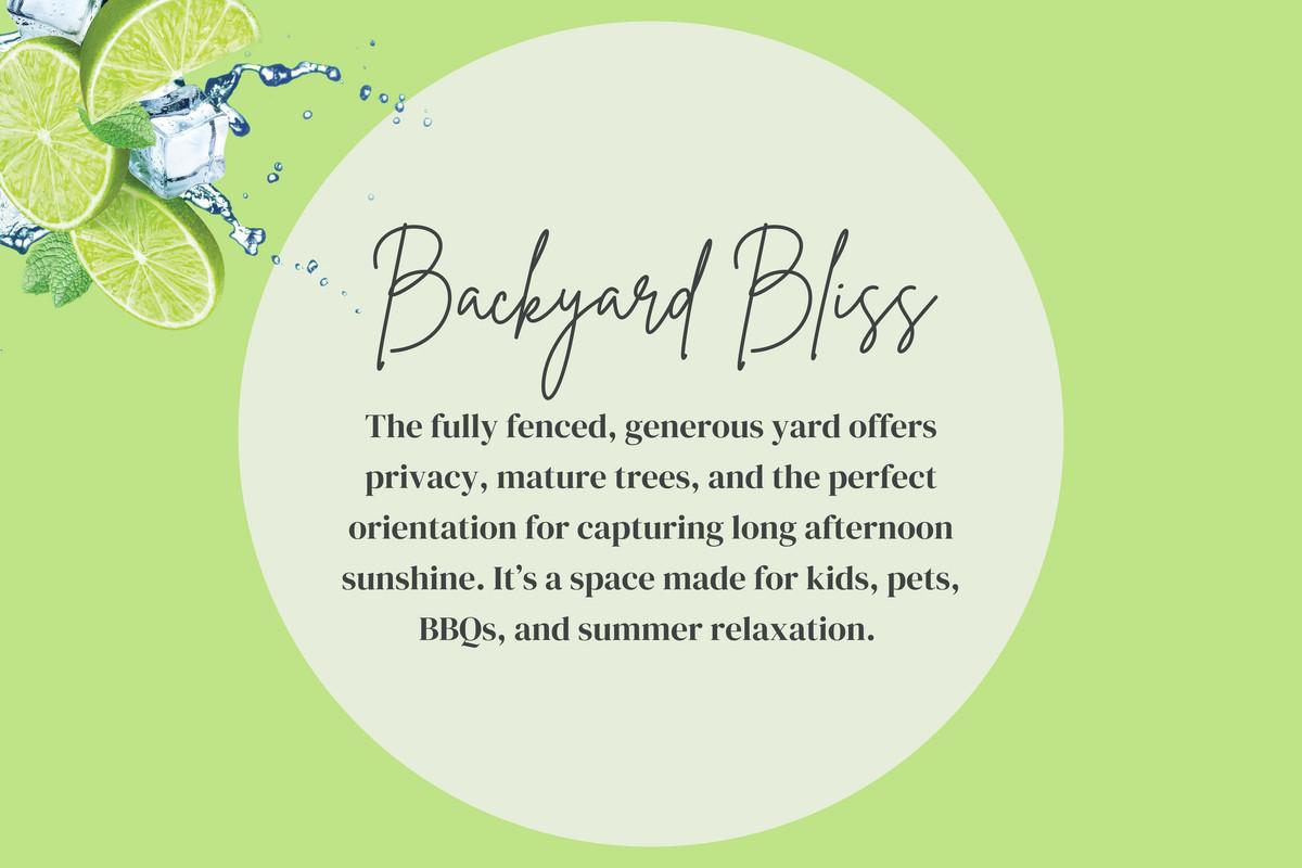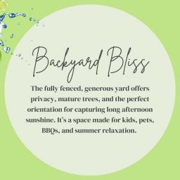 BACKYARD BLISS: The fully fenced, generous yard offers privacy, mature trees, and the perfect orientation for capturing long afternoon sunshine. It's a space made for kids, pets, BBQs, and summer relaxation.