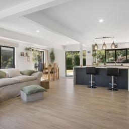 This beautifully presented four-bedroom home offers modern comfort and effortless style throughout. Featuring sleek tiled floors that enhance both practicality and contemporary appeal, the home is designed for easy living.