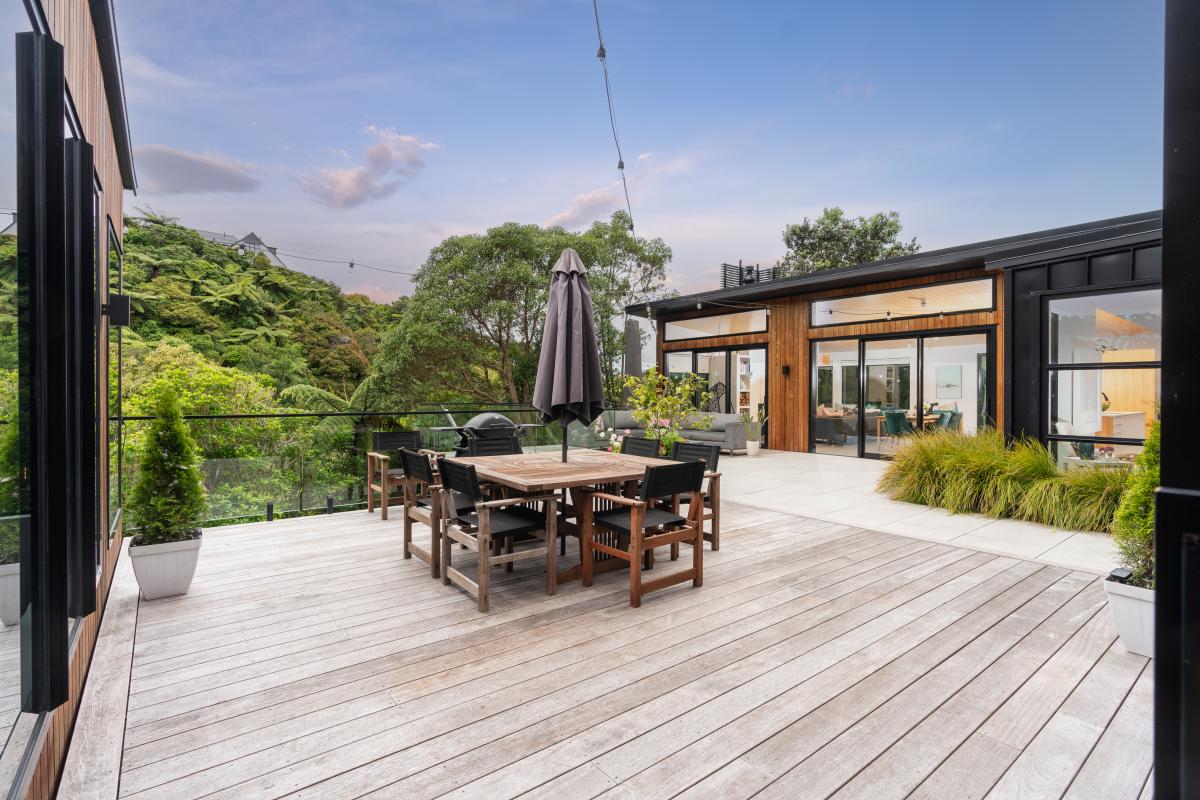 Looking out across a 'green ocean' of native bush and alive with birdsong, 17 Kim Street offers a rare combination of privacy and convenience.