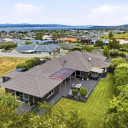 With the rise in the cost of living it makes sense to think outside the box and this solid concrete plaster on block brick home is exactly that. Ideal for two homes coming together offering income potential and privacy to all. In addition to the expansive 4 bedroom, 2 bathroom, 2 living family home there is a separate area that would be perfect for older family members or perhaps adult children that are struggling to purchase a decent property within their budget level. Offering an independent living zone master bedroom with an ensuite and sunny, private outdoor living. Connected to the main home via a covered outdoor deck area, this space can be closed off for independent living. Downstairs with its own entry is a studio room complete with ensuite and sitting area, the current owners use this for home and income. The main part of the home is a true entertainer's delight, slider doors stack back giving a seamless flow to covered outdoor living, the open plan living, dining and kitchen have been modernised with warm neutral tones, quality appliances and a large wood burner at the heart. There is a separate living zone that can be closed off for a peaceful retreat taking in elevated lake and mountain views. The master is complete with a walk in robe and ensuite, a slider door opens out to a sunny deck, perfect for your morning cuppa. There is plenty of space for family living with 3 more good sized bedrooms and a large bathroom with a separate powder room. Four heat pumps throughout and a ventilation system ensure year round comfort. Ample storage throughout coupled with excellent off street parking, an extra large double garage plus a little hobbies space, perfect for storing all the fishing gear. This solid built home is on a sloping site with a concrete slab between levels, it is constructed from concrete block and brick with a plaster finish. This is not just a home, it's an opportunity to get ahead, to enjoy all life has to offer under one roof. A truly generous offering that has to be seen to be admired. Don't miss your chance, call Rach and Kylie today at Ray White Taupo to find out more.