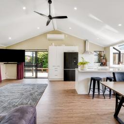 3 Large bedrooms, remodelled Kitchen, large Living and Dining area connected to outside decking patio over looking the back yard living, perfect for families. Separate Toilet 1 Bathroom.