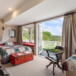 There are five bedrooms and two bathrooms, with doors from the bedrooms and living spaces opening directly onto the deck areas. This creates a wonderful flow to the outdoors and allows natural light and garden views to fill the home. Two comfortable lounges offer space for families to relax or entertain, while the outlook to the bush and established grounds adds a constant feeling of calm.