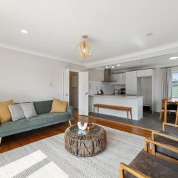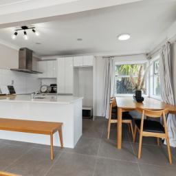 The contemporary kitchen and bathroom add a sleek, fresh feel, while effortless indoor-outdoor flow makes entertaining or unwinding a breeze. A heat pump keeps things cosy in winter and cool in summer.