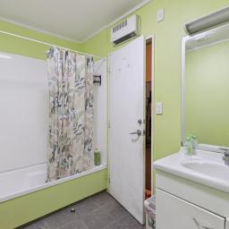 Step inside to a large living area ideal for relaxation or entertaining. The step-up kitchen adds charm and features ample counter space, flowing seamlessly into a dedicated dining area.