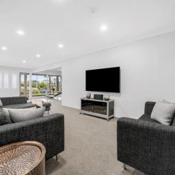 The ground floor of the main house expands your options further, providing a massive floor area that includes: An additional spacious lounge, perfect as a media room, teenage retreat, or quiet library. A large fifth double bedroom, offering a quiet corner for guests or a home office. A separate laundry room designed with practicality in mind, a separate toilet, and a internal-access garage that provides secure storage for vehicles and coastal gear.