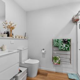 On the ground level you'll find two double bedrooms, both complete with built-in wardrobes for easy storage. The master opens via a sliding door to a private east-facing patio, the perfect spot for your morning coffee. The generously sized bathroom is also conveniently located on this level.
