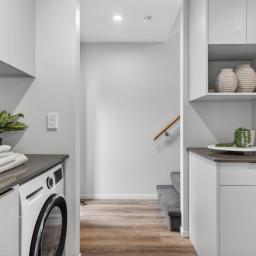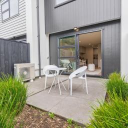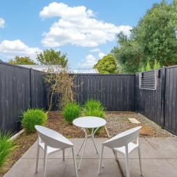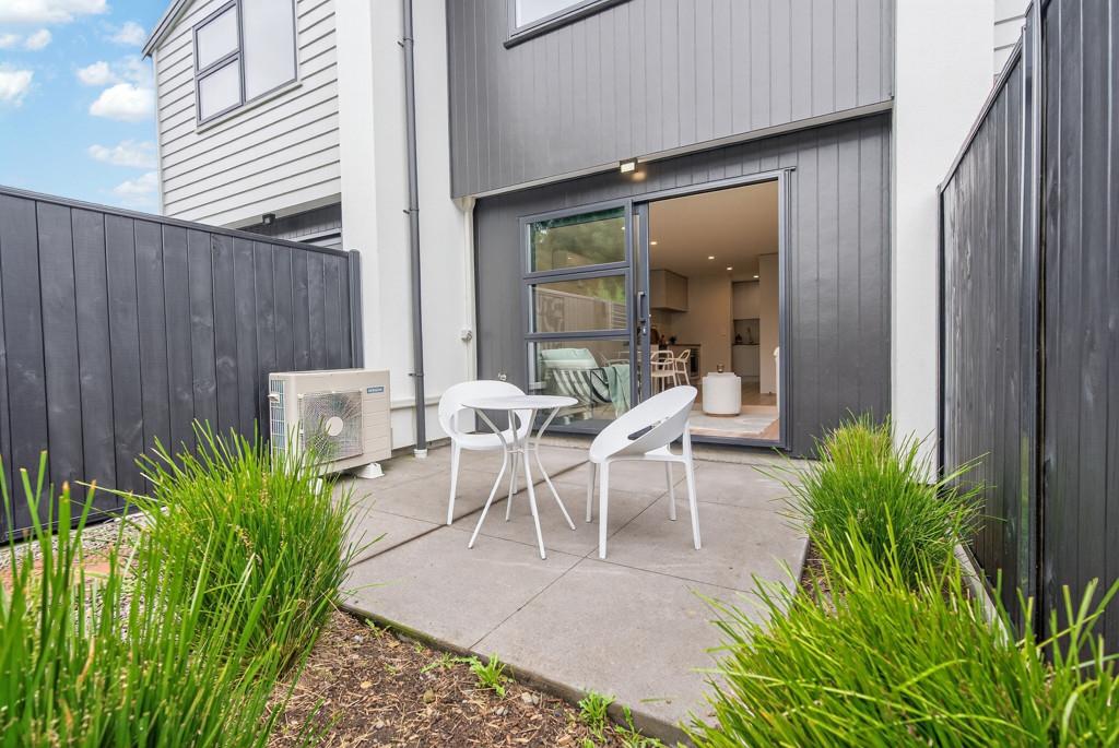 Sliding doors extend the living space outdoors to a private courtyard and easy-care garden, providing just enough greenery to enjoy without sacrificing your weekends. It's a peaceful setting for your morning coffee, a relaxed BBQ, or simply unwinding at the end of the day.