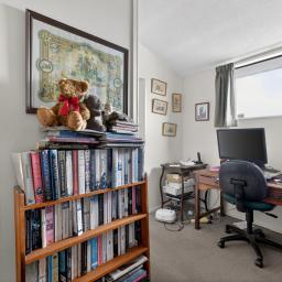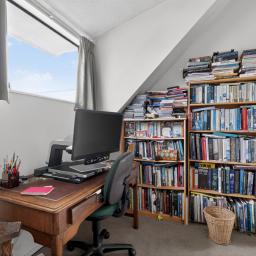 Upstairs, you'll find three good-sized bedrooms and another full bathroom. The main bedroom includes an adjoining studio, perfect as a creative space, home office, etc.