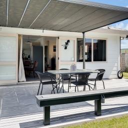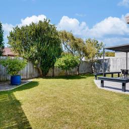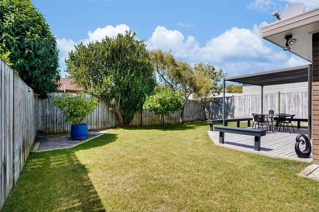 The heart of the home features a combined kitchen and dining area, ideal for family meals and entertaining guests. The living room is spacious and filled with natural light, providing a cozy space to relax after a long day and opens onto a covered, decked entertaining area perfect for gathering friends and family . Each of the three bedrooms is designed for comfort, with ample storage and space for personalization. The bathroom features a separate WC, ensuring convenience for busy mornings.