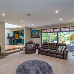 This stunning home is designed for relaxed living, with sliding doors opening onto decks at both the front and rear, creating sun soaked nooks where you can while away the hours doing exactly what you choose.