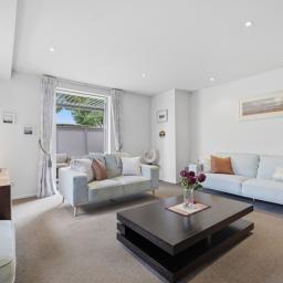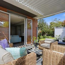 Seamlessly extending from the living spaces, the private sun-drenched courtyard features a patio with louvre cover, offering a sheltered outdoor retreat perfect for alfresco dining and relaxed evenings, with minimal upkeep required.