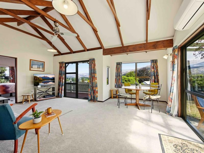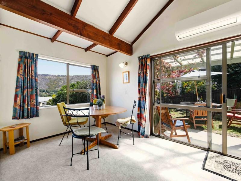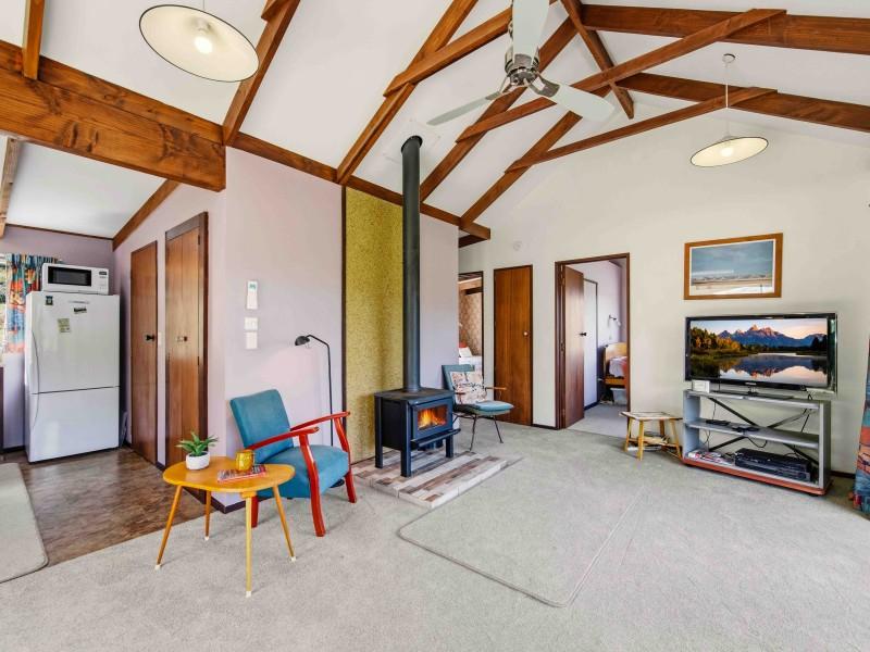 Step inside and you’ll find a warm, welcoming home with open plan kitchen, dining and living. The original kitchen offers character and potential, while the modernised bathroom and separate toilet add practical comfort. Imagine sitting at the dining table with a cuppa in hand, soaking in the ever-changing landscape beyond your window. A wood burner and heat pumps keeps the home cosy through the cooler Central Otago months, creating that classic cottage feel we all love.