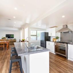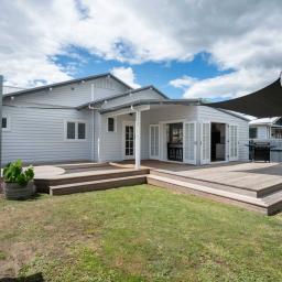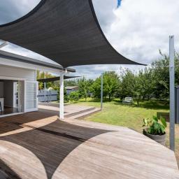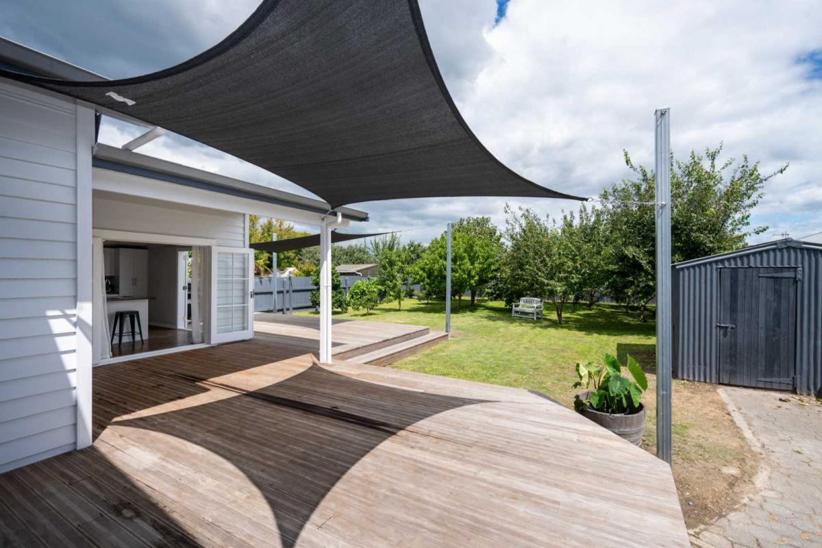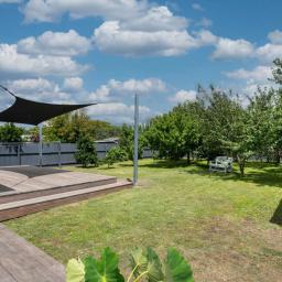 Boasting five bedrooms, two modern bathrooms, and three toilets, there’s space and convenience for everyone. The heart of the home is the light-filled open-plan living and dining area, designed for effortless family living. French doors open out to a large sun-soaked deck complete with shade sails – the ultimate setting for summer BBQs, entertaining friends, or simply enjoying a quiet evening outdoors.