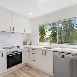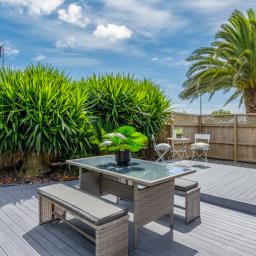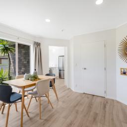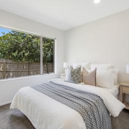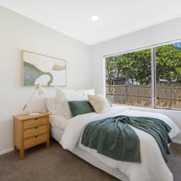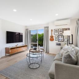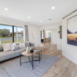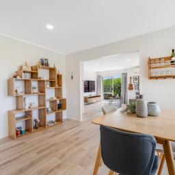 Inside, the home features three well-proportioned bedrooms serviced by a stylish semi-ensuite, along with a thoughtfully designed open-plan dining and living area. The layout creates a natural sense of space and connection, ideal for both everyday family living and entertaining guests. Large windows invite in natural light, enhancing the warm and welcoming atmosphere throughout.