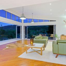 Set on approximately 6 acres of established grounds with native plantings and terraced landscaping, this substantial residence delivers privacy, presence and versatility in equal measure. Expansive open plan living flows through dual five metre bi-folds to a generous balcony, creating seamless indoor–outdoor living with elevated outlooks. High stud ceilings, quality finishes and meticulous detailing reinforce the sense of space and calibre throughout.