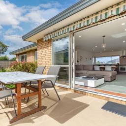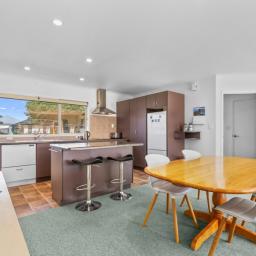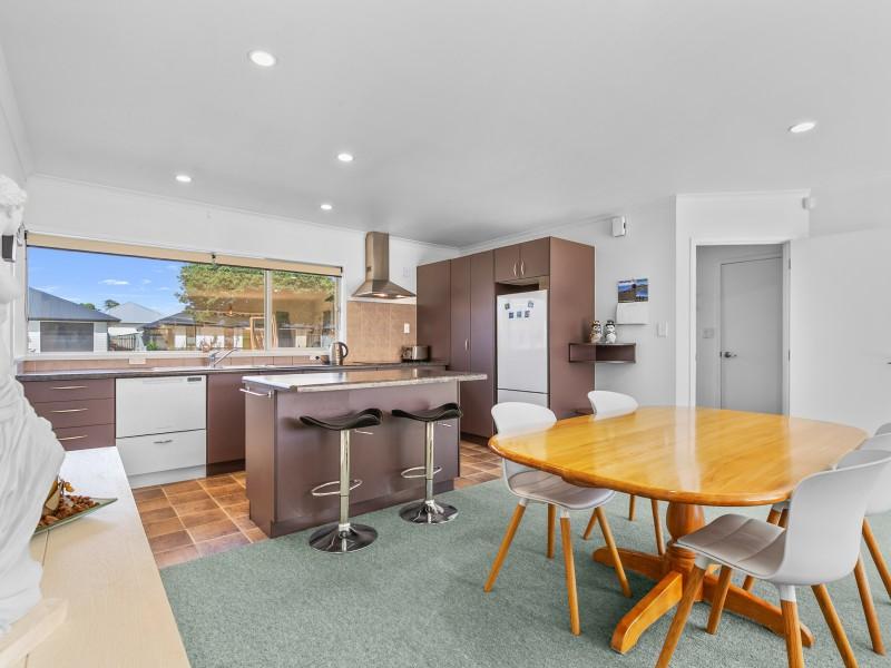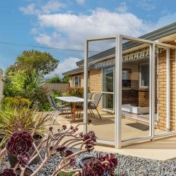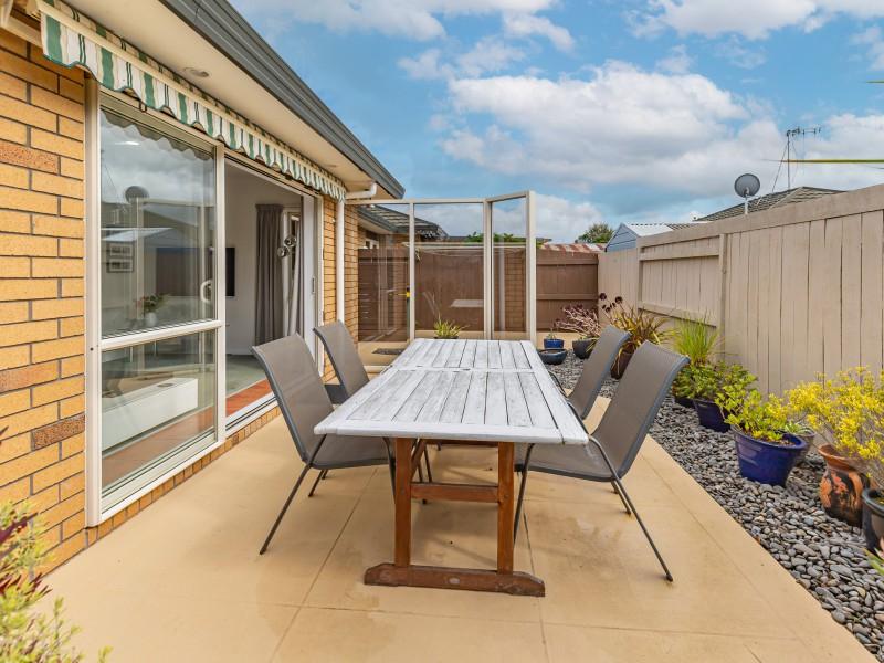 Built in 2004 and constructed in brick for peace of mind, this delightful home offers effortless living in a private, easy care setting. The light filled open plan layout brings together the kitchen, dining, and lounge in one inviting space. The kitchen is well appointed with an island bench, wall oven, hob, and dishwasher, ideal for both everyday living and entertaining family. Sliding doors extend the living outdoors to a sunny patio, complete with an awning for shade and a glass windbreak, creating a sheltered spot to relax.
