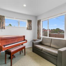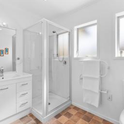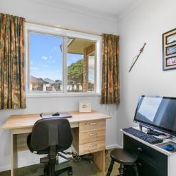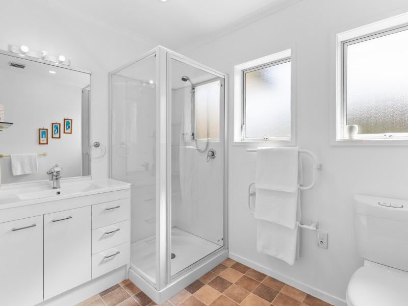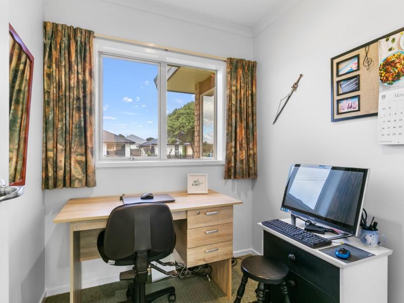 A heat pump ensures year round comfort, while infinity gas hot water provides convenience. Two generous bedrooms are complemented by a separate office, perfect for working from home or as a hobby space. Decorated in a neutral palette and bathed in natural light, the home feels welcoming and easy to enjoy. The spacious bathroom includes a shower, vanity, and toilet.