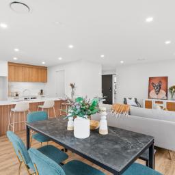The home opens into an open plan living, dining and kitchen space filled with natural light. The layout is well considered and practical, creating a comfortable central living area that suits both everyday life and relaxed entertaining.