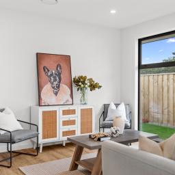 A large double internal access garage includes a dedicated laundry area, providing a simple and functional setup that fits neatly into the overall design. Ducted heating provides year round comfort, supporting the home's clean, modern finish and thoughtful detailing throughout.