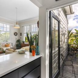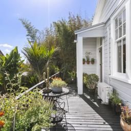 The open plan dining and lounge are light and sun filled via the gorgeous sash windows. Your days will be spent enjoying this warm and welcoming space. The sunny wrap-around deck - ideal for morning tea or coffee, and afternoon vino's with friends.