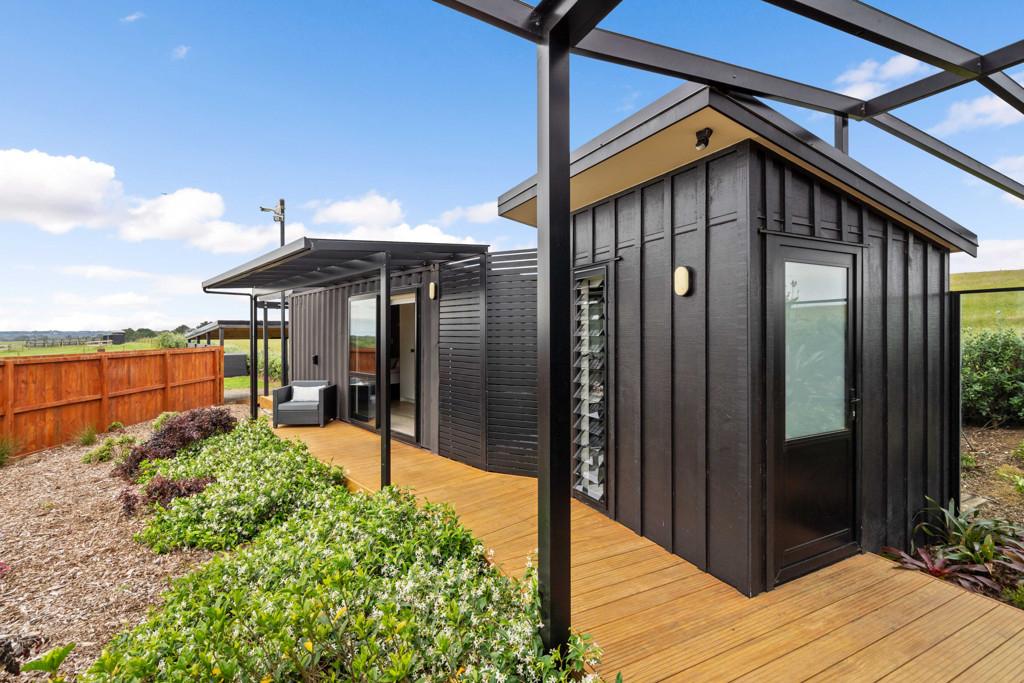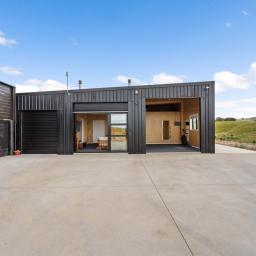 Positioned to capture peaceful outlooks, a beautifully appointed container residence [unconsented] provides a private sanctuary. Removable by design, it offers flexibility for personal use, or future development, while the larger lower-level structure remains free to function as a workshop, retreat centre, or commercial base.[unconsented]