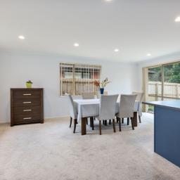 The open-plan kitchen and dining area create a welcoming space, perfect for entertaining guests and enjoying family meals together.