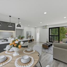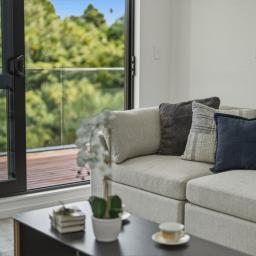 • Indoor-Outdoor Flow: Large sliding doors open to private, low-maintenance outdoor spaces for year-round enjoyment.