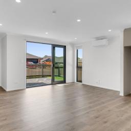 Designed for easy living, the home features three well-proportioned bedrooms, including a master with ensuite, a stylish family bathroom, and a spacious open-plan living area that seamlessly connects to the dining and kitchen space. The contemporary kitchen is thoughtfully designed with quality appliances and ample storage, making everyday living and entertaining effortless.