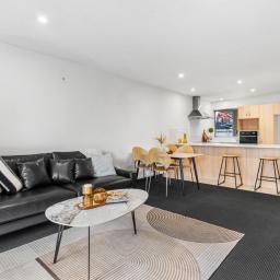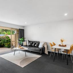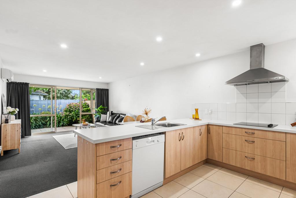 Step inside to find a light-filled, open-plan sanctuary where the heart of the home is a modern, functional kitchen that flows into a spacious living and dining area. Large sliding doors invite the outside in, leading you to a private, sun-drenched patio and a tidy lawn area. It is a perfectly sized outdoor space with a small, easy-care garden.