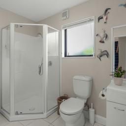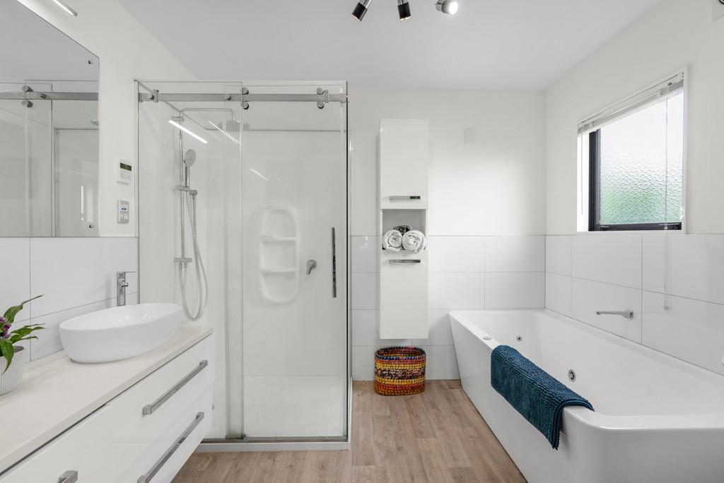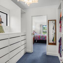 The master suite offers a true sense of retreat, with a walk-through wardrobe leading to a beautifully appointed ensuite, complete with a generously sized bath perfect for long, relaxing soaks.