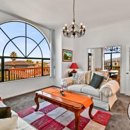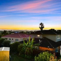 Large picture windows flood the home with natural light while framing captivating views out to the Manukau Heads, where breathtaking sunsets become part of your everyday backdrop.