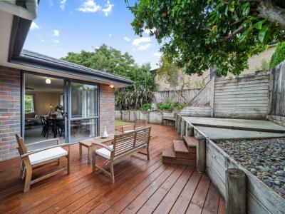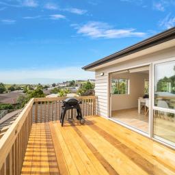 Outside, the fully fenced section is sloping but provides space for pets and kids to play. Elevated views are available to enjoy from the top storey deck, extending the already ample living space.