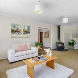 All three bedrooms are generously sized, ideal for families or flatmates. The extra-large living area is light-filled and welcoming, complete with a woodburner for cosy winter evenings and an HRV system ensuring year-round comfort. The bright, stylish kitchen and dining area flows effortlessly into the living spaces and out onto a spacious deck - perfect for summer barbecues and relaxed outdoor entertaining.