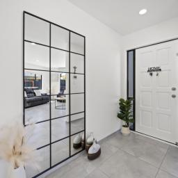 Luxurious elements like the recessed ceiling lighting, backlit LED mirrors, infinity hydro tap and easy-care tiles throughout are sure to engender love at first sight. Designed for busy lifestyles, the large garage features attic storage to house all the extras that family life accumulates.